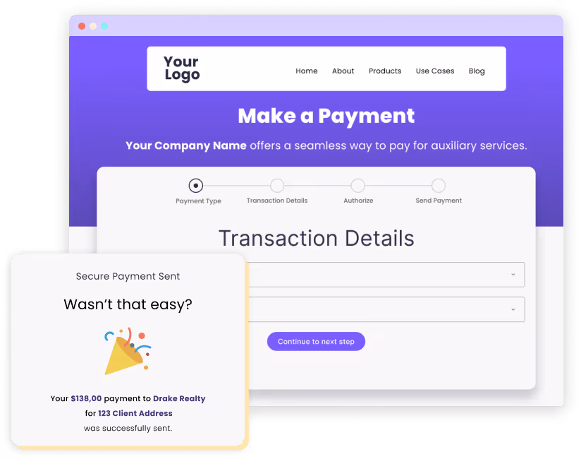Boost your payment collections with a secure and personalized interface to match your brand.